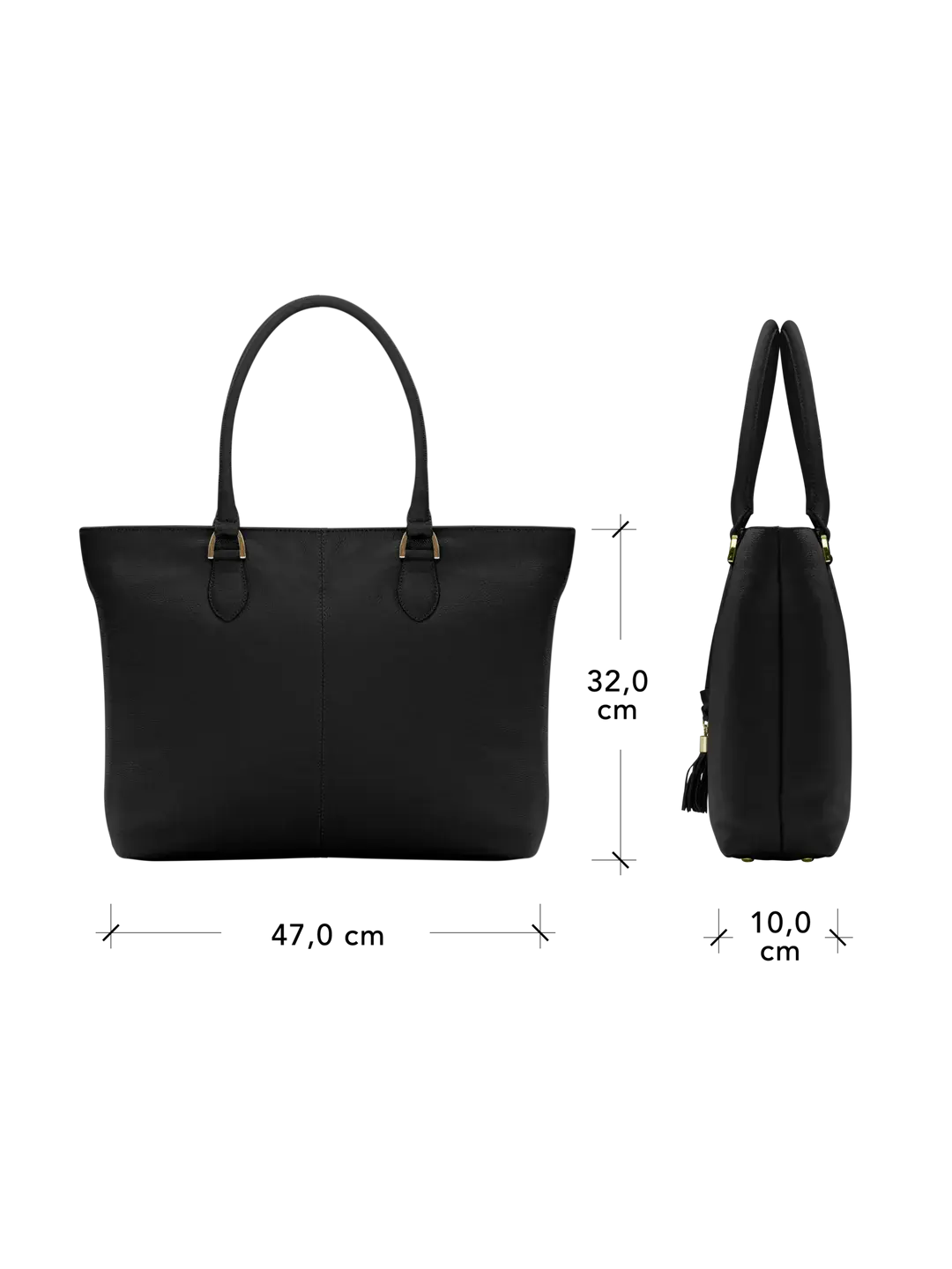 Amsterdam is a stylish and spacious tote bag handcrafted from pebbled full-grain leather. The bag's supreme quality and golden hardware make it a stunner. The spacious main compartment with multiple storage rooms, including a padded laptop compartment, makes it perfect for your everyday essentials.
