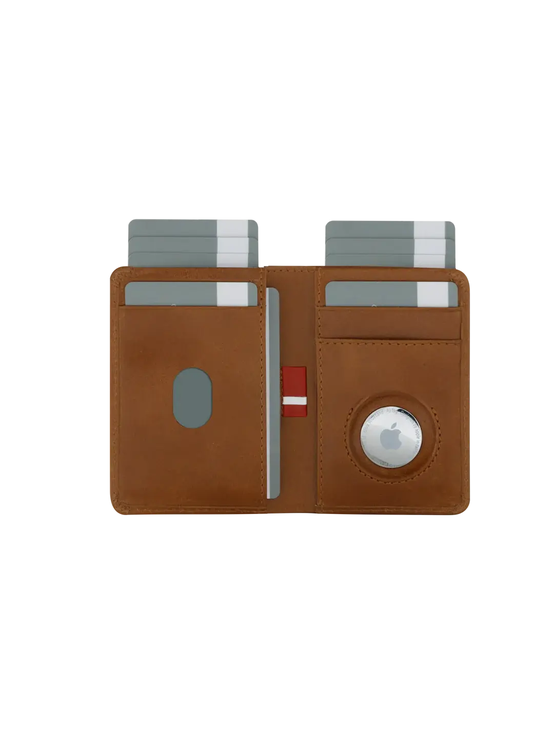 Keep track of your treasured belongings with the Billund AirTag Slim Wallet. A premium quality wallet handcrafted from durable full-grain leather and designed to fully support Apple AirTag. With multiple card slots and one large middle cavity, you can easily store 8 credit cards and notes.