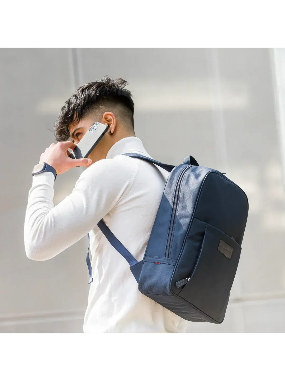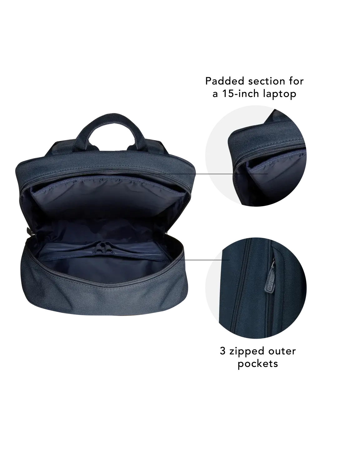 Handcrafted using durable material made from recycled plastic. This elegant backpack features adjustable padded shoulder straps, two-way zip closure and 3 zipped outer pockets. Inside you'll find a padded section for a 15-inch laptop and considered organisation for all your essentials.