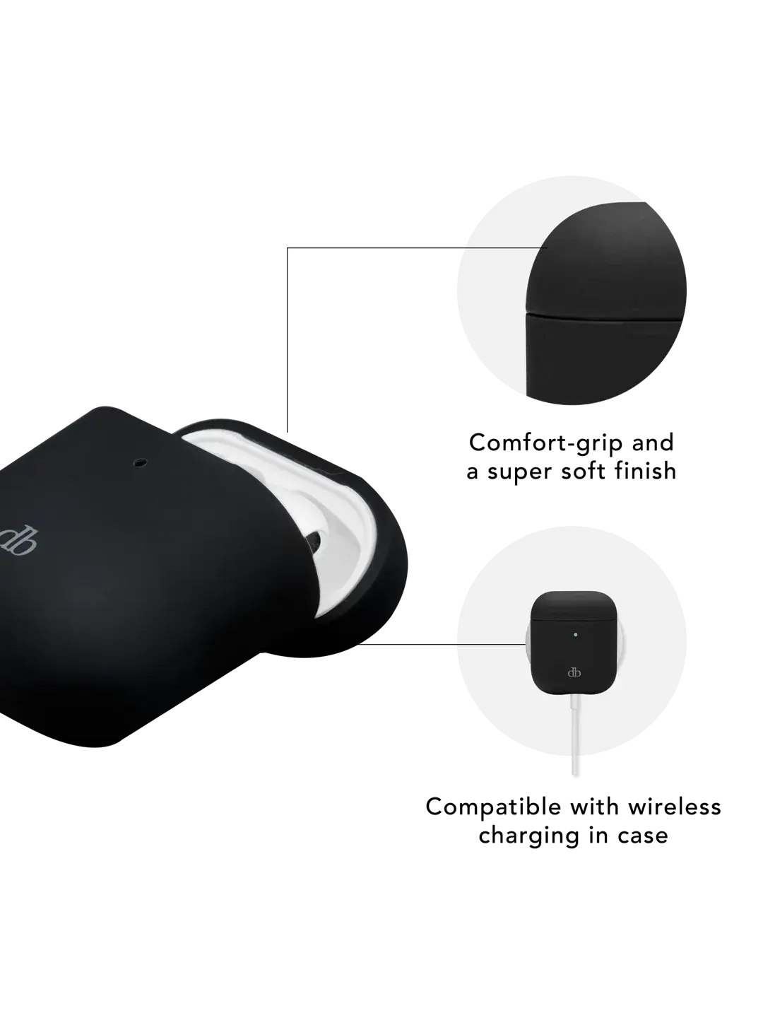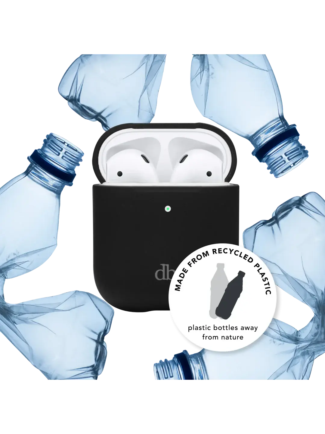 • Made with recycled silicone and GRS-certified recycled plastic. 100% recyclable. • Ultra-slim design • Comfort-grip and a super soft finish • Fits snugly around your AirPods • Impact protection • Compatible with wireless charging • Made without compromising on quality, functionality, and design