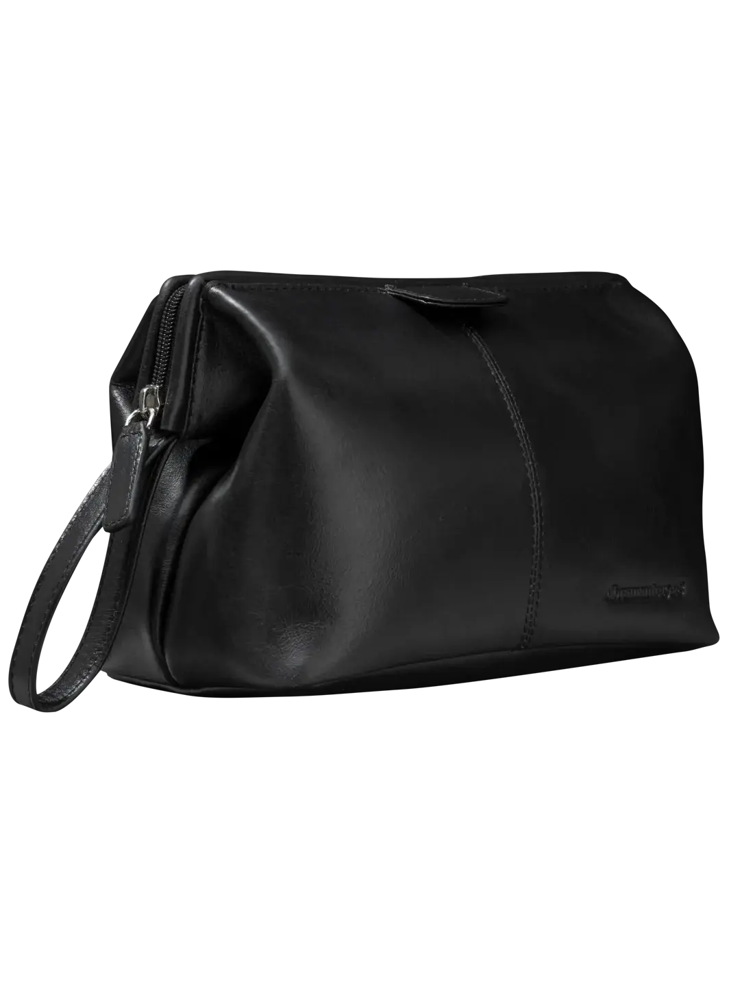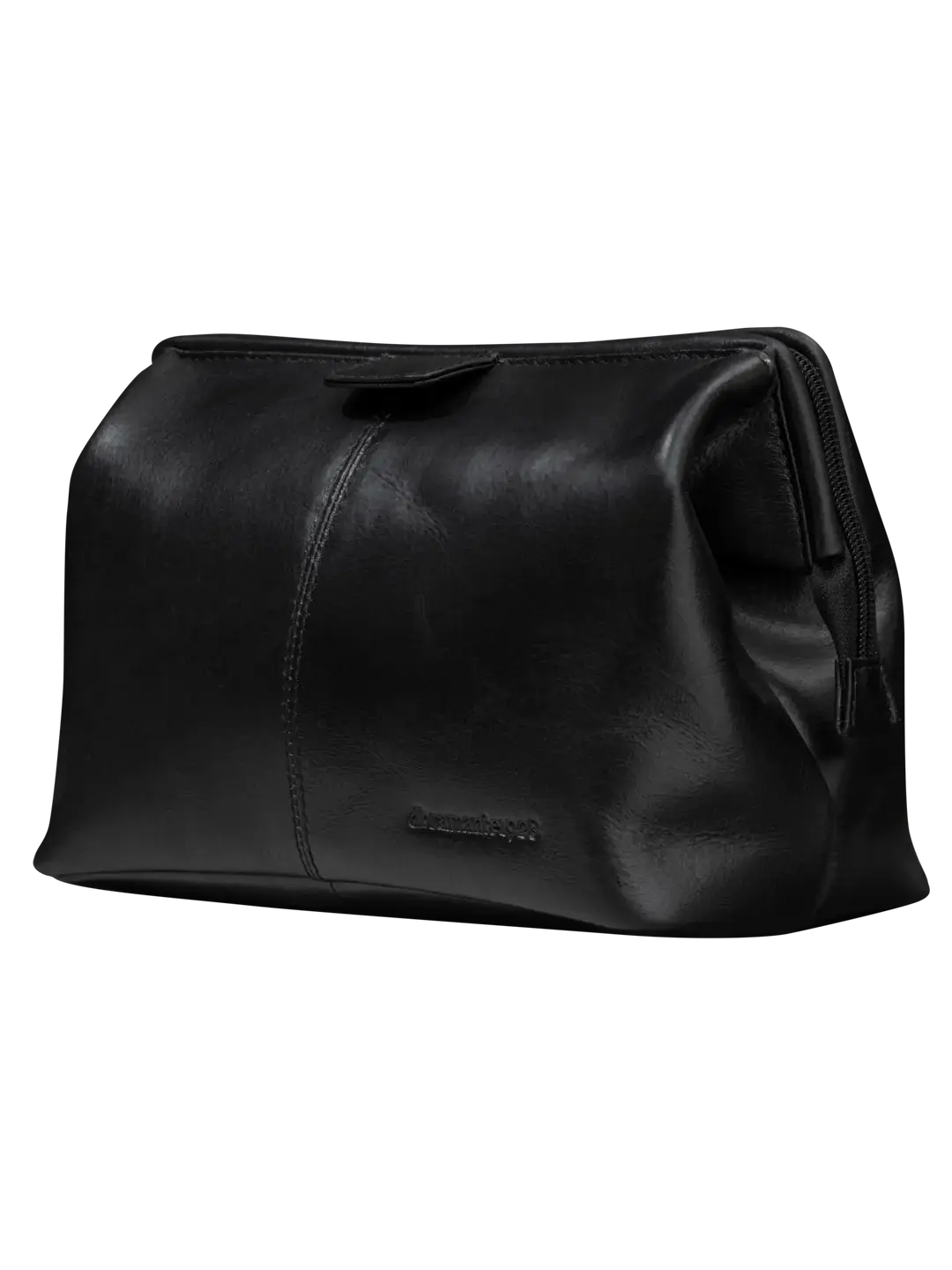 The perfect travel companion for your overnight stay. Handcrafted from our luxurious soft full-grain leather, this elegant wash-bag is a secure and spacious choice ideal for storing all your toiletries. Outside there is a wrist strap and the zip closure opens to reveal a spacious lined central compartment . Designed in Denmark by a Climate Positive Company, protect your toiletries and the planet with this feature-rich eco-friendly wash bag.