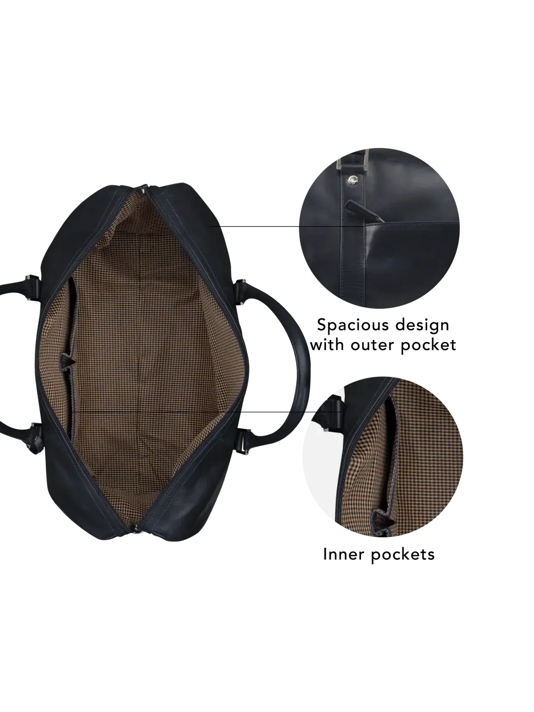 Kastrup is a functional and spacious weekender bag in a classic design - the perfect travel buddy. The bag is handmade from durable full-grain leather that oozes exclusivity. The main compartment has plenty of room for clothes and other necessities and additional smaller pockets for easy organization.