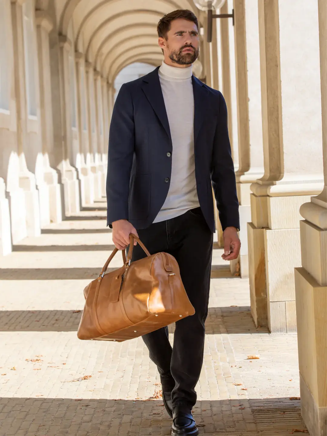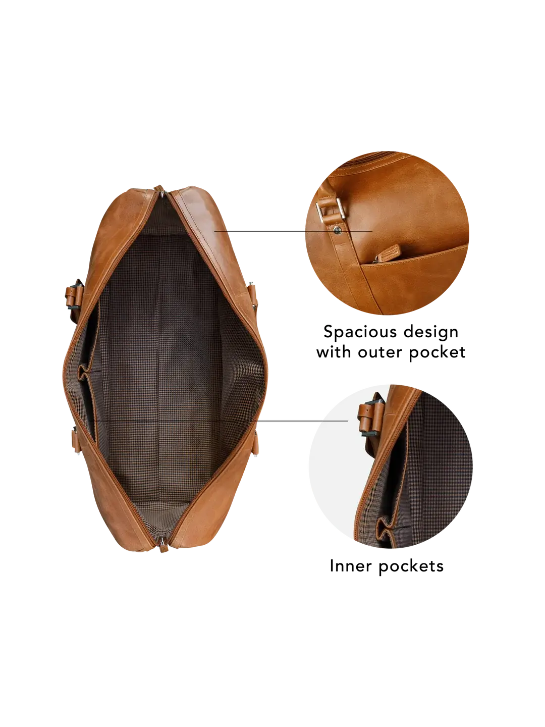 Kastrup is a functional and spacious weekender bag in a classic design - the perfect travel buddy. The bag is handmade from durable full-grain leather that oozes exclusivity. The main compartment has plenty of room for clothes and other necessities and additional smaller pockets for easy organization.