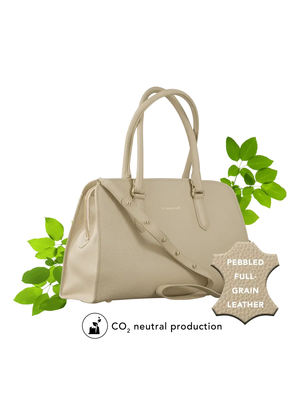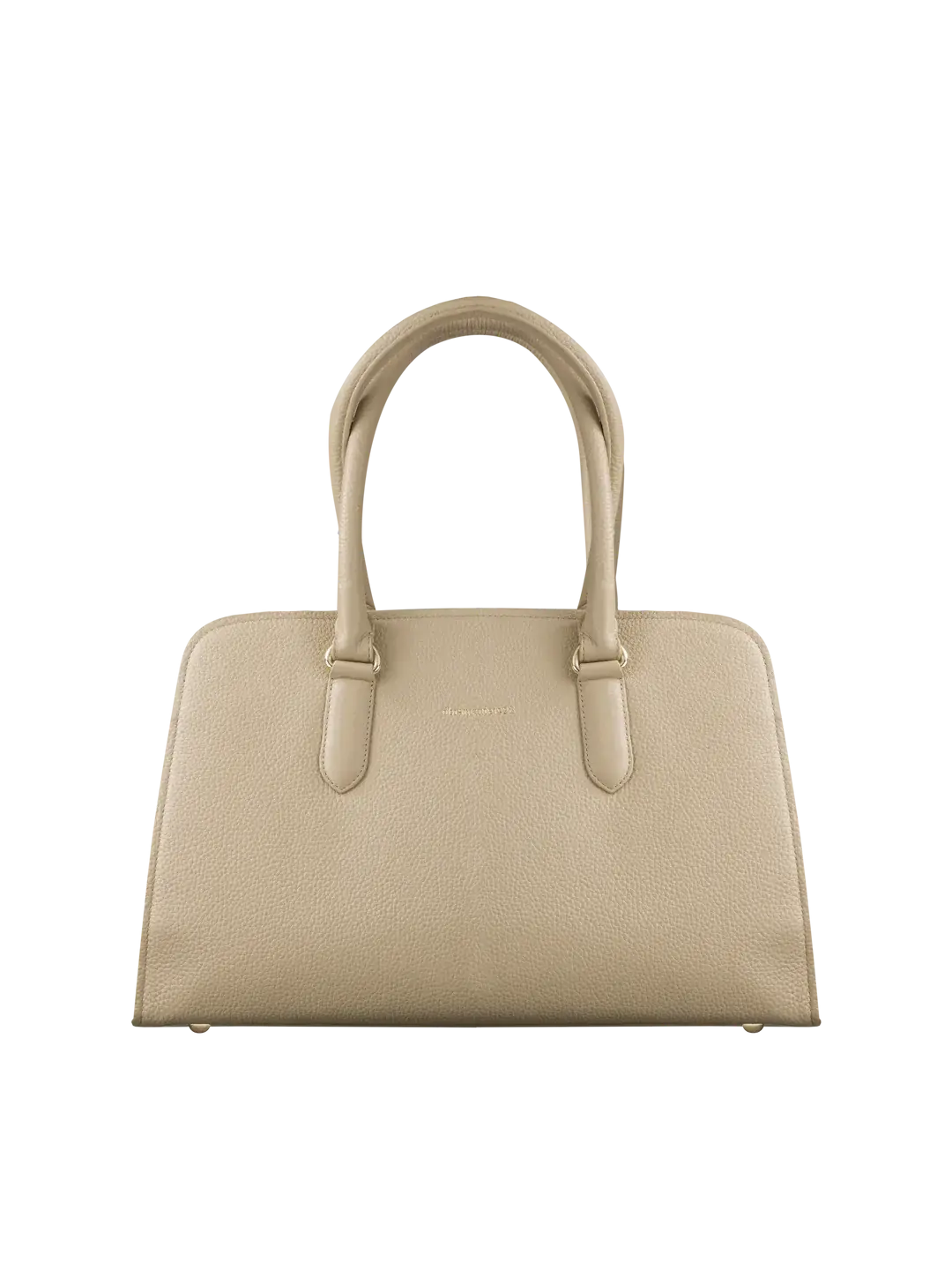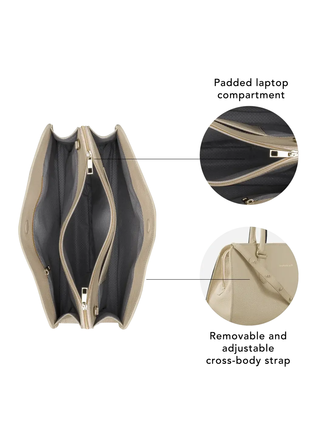A lovely, stylish work bag made from luxurious natural leather, with room for a laptop inside. Perfect for everyday use when you need to keep your computer and papers with you while on the move. It has a padded pocket for a laptop that closes with a zip. This bag’s comfortable handle makes it easy to carry over your shoulder or in your hand. It also features a removable, adjustable cross-body strap. The bag is beautifully accented by rivets on the cross-body strap and feminine hardware in gold.
