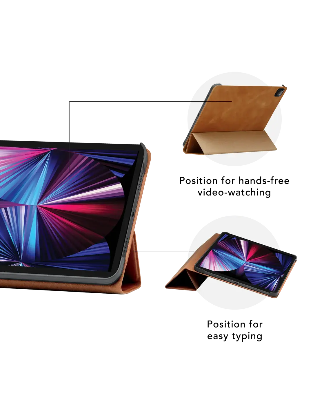 Risskov is a tri-fold folio iPad case with an ultra-slim yet impact protective design. It’s the perfect iPad case for your changing needs! The dual standing positions offer easy typing as well as hands-free video-watching. Really, it’s all up to you, which stand function you prefer for typing, reading, or streaming.