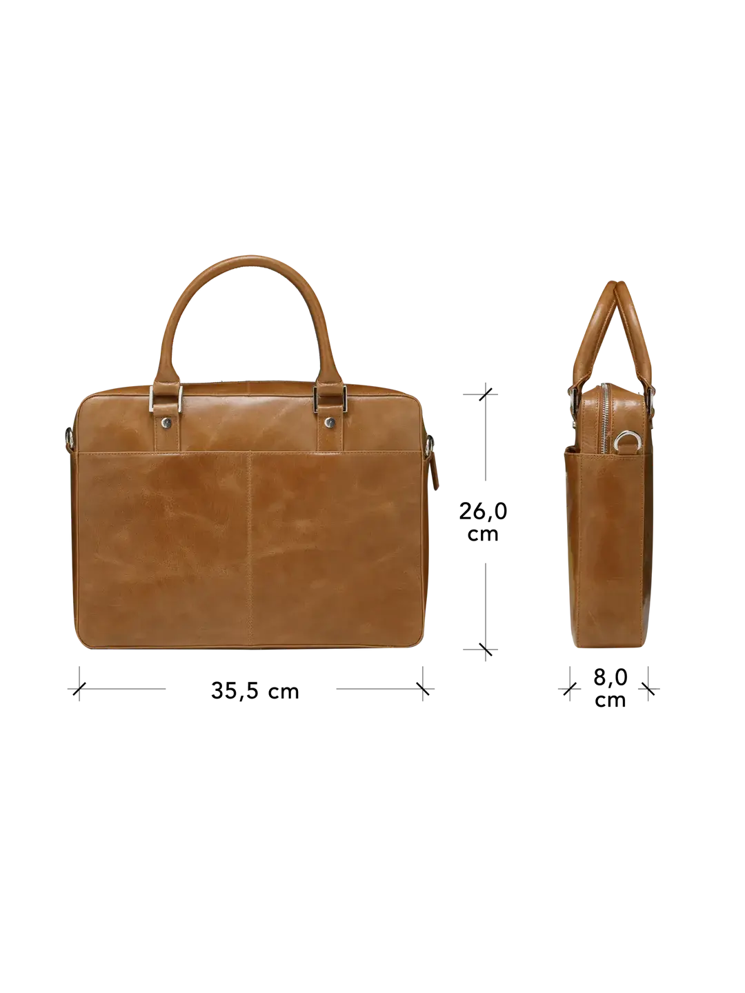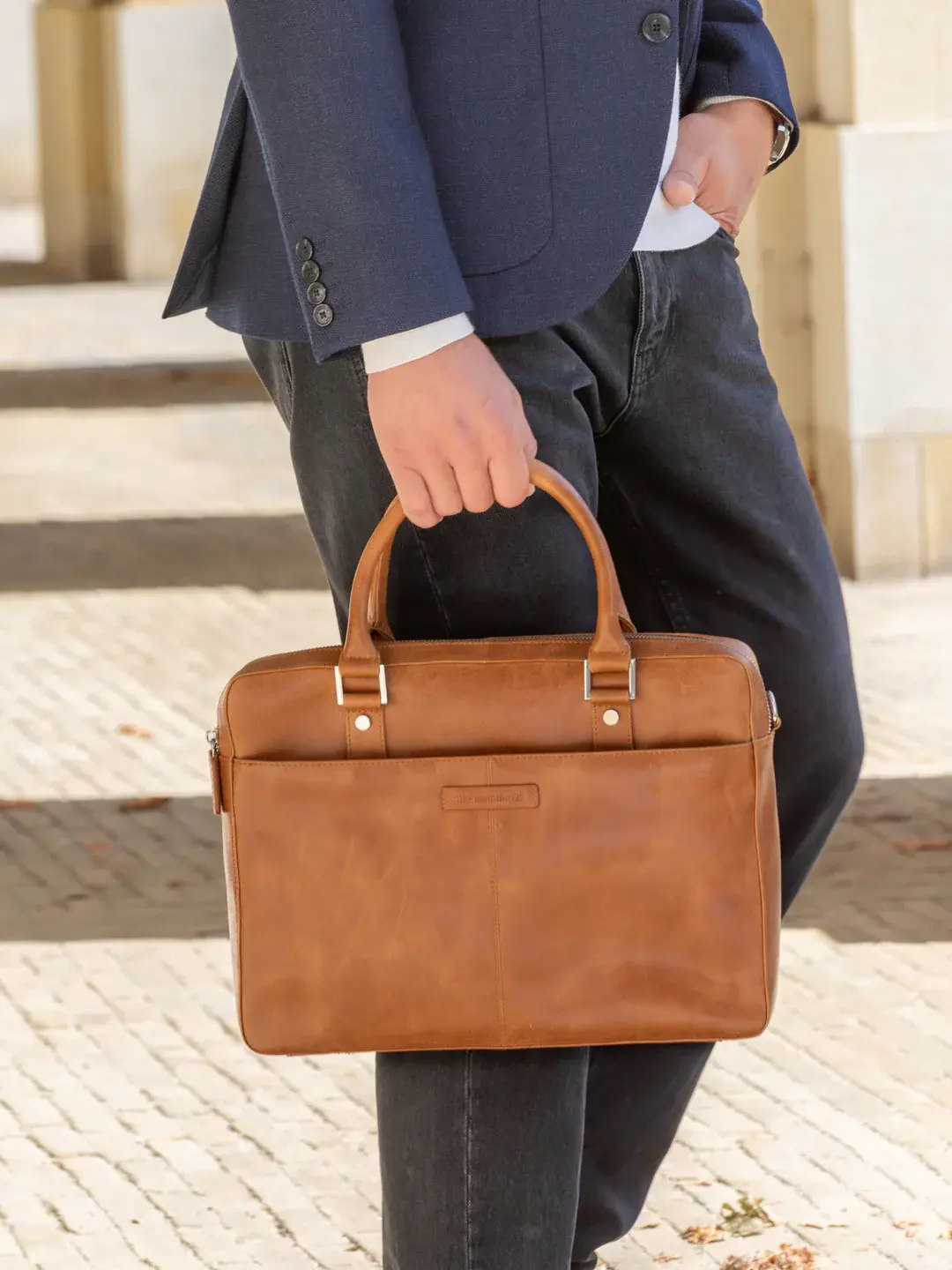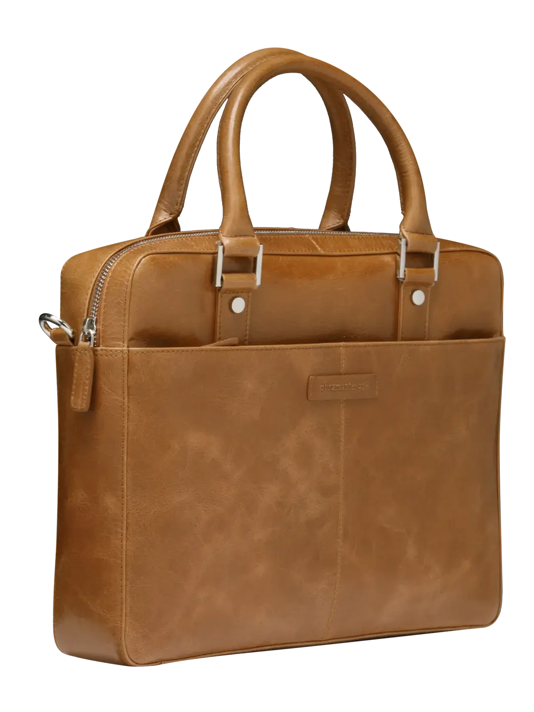 Rosenborg is a classic laptop bag with a simple yet functional design. The bag is handmade from durable full-grain leather and has a spacious main compartment divided into two sections. One of the sections are perfect for your Macbook or PC, while the other section has additional internal pockets for easy organization of your things.