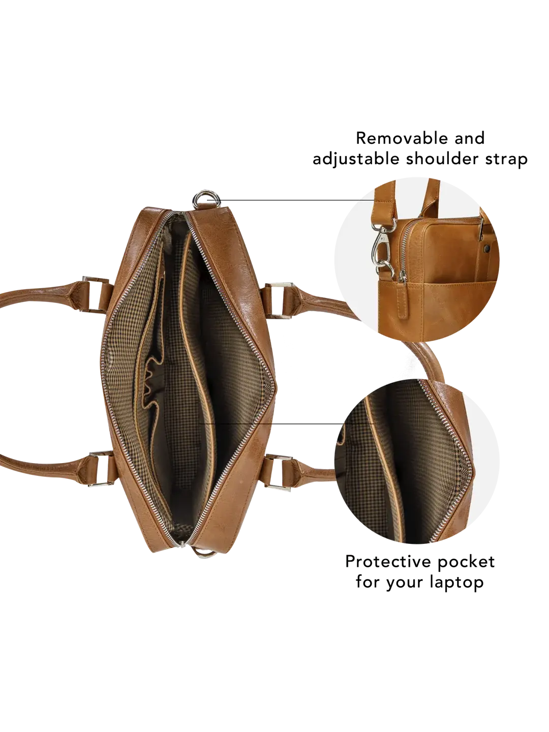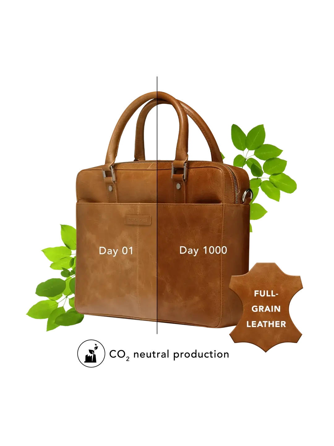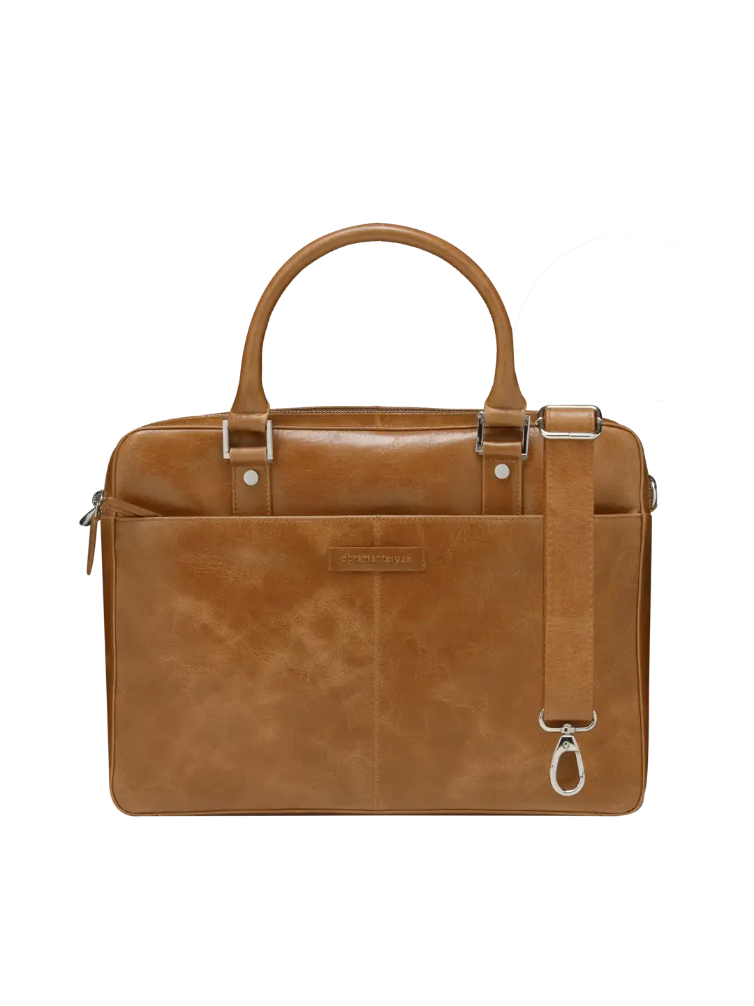Rosenborg is a classic laptop bag with a simple yet functional design. The bag is handmade from durable full-grain leather and has a spacious main compartment divided into two sections. One of the sections are perfect for your Macbook or PC, while the other section has additional internal pockets for easy organization of your things.