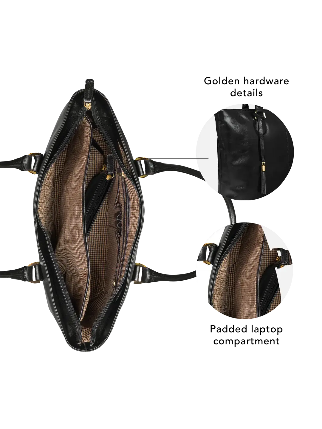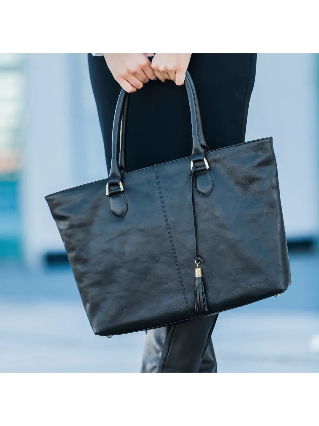Sophie Amalienborg is a stylish and spacious tote bag handcrafted from full-grain leather. The bag's supreme quality and golden hardware make it a stunner. The spacious main compartment with multiple storage rooms, including a padded laptop compartment, makes it perfect for your everyday essentials.